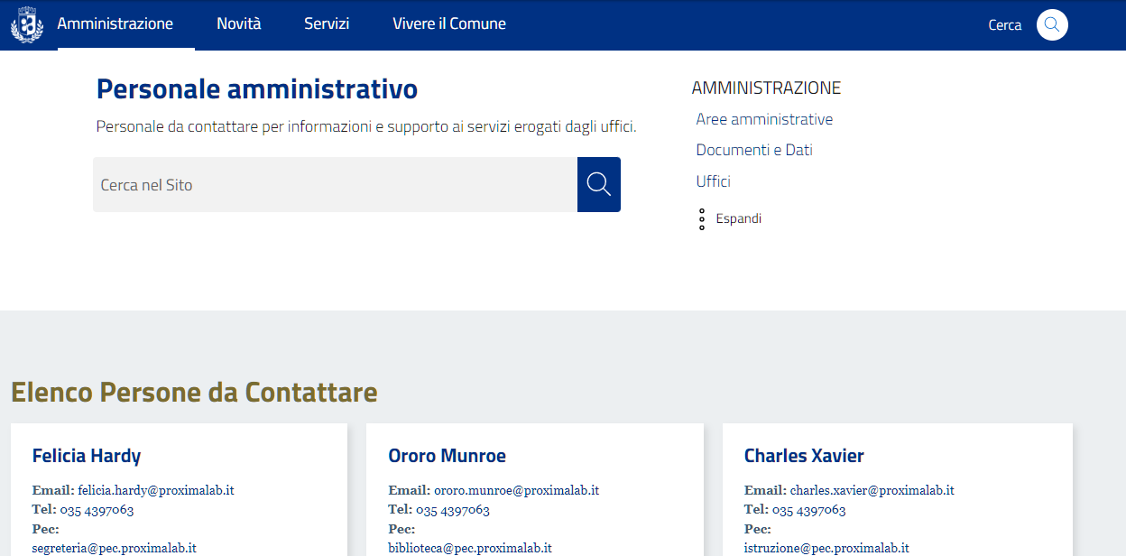 Questo contenuto permette di profilare il personale dipendente da aggiungere ai diversi uffici.