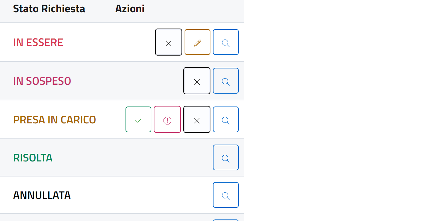 A seconda dello stato in cui si trova la richiesta, è possibile eseguire alcune "AZIONI".